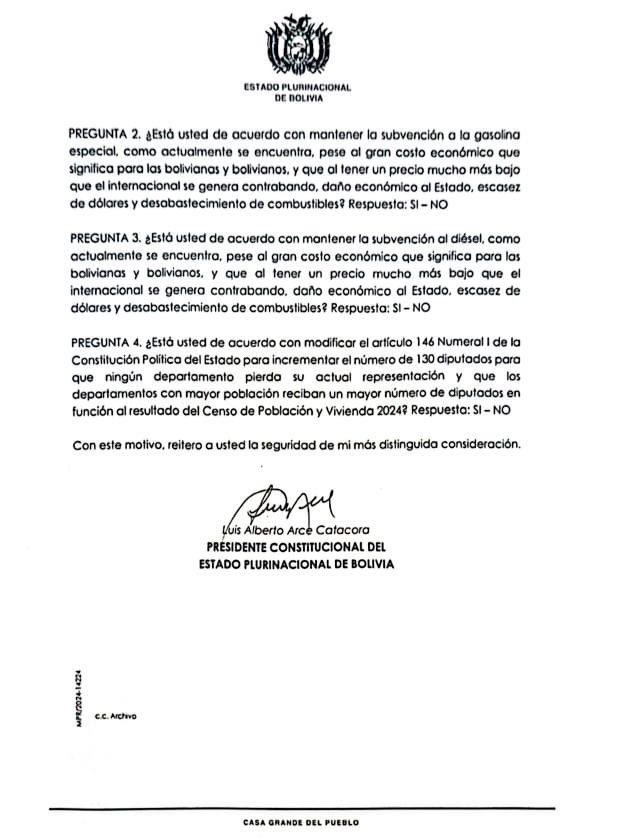 Llevar las preguntas de Luis Arce, presidente de Bolivia, a un referéndum inconstitucional por decreto, implica el gasto de 180.000.000 de bolivianos que que no sobran en las vaciadas arcas del Estado y que hacen falta para el pago del personal de salud (ayer y hoy en huelga por impagos), para mitigar los incendios que están devastando la Chiquitania, para la importación de diesel (con filas interminables en los surtidores y trayéndolo desde Rusia porque no tiene con qué pagar a los proveedores de los países limítrofes), etc.