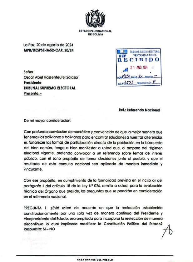 El pedido al Tribunal Electoral Plurinacional salta los requisitos para proponer una reforma constitucional y salta a la Asamblea Legislativa, que junto a la iniciativa popular, son las únicas autorizadas a promover la modificación de la norma suprema. El artículo 140 de la Constitución Boliviana es tajante respecto a la concentración de poder y a la usurpación de funciones.