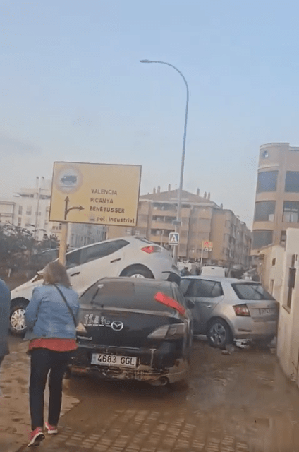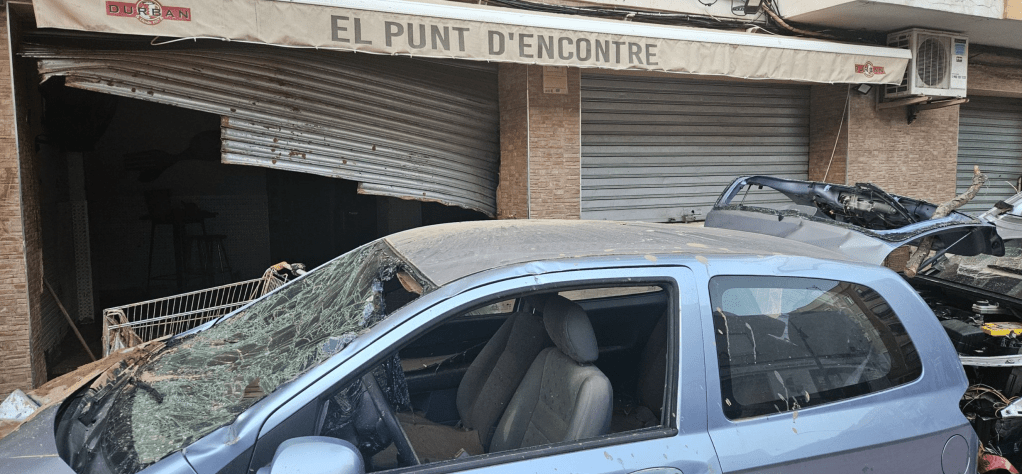 Aquí entro a Paiporta (Valencia, España) el día después de las inundaciones, se puede observar ya desde la entrada un entorno post apocalíptico, cementerios de coches y personas que no saben ni por dónde empezar a reparar un pueblo arrasado y destruido.