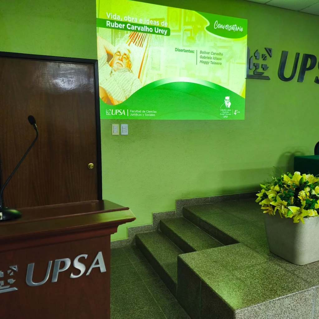 Agradezco la invitación de Enrique y la Universidad Privada de Santa Cruz, a través de su decano, especialmente por dos motivos: El primero la emoción de que la Facultad de Ciencias Jurídicas y Sociales de la UPA hubiera reparado en una vida y una obra tan valiosas como la de Ruber Carvalho Urey para resaltarla en la Cátedra Libre Manfredo Kempff Mercado. Sin duda, en un futuro próximo, las mentes acuciosas que dirigen esta dilecta academia cruceña u otra universidad en los amados territorios y pueblos de Santa Cruz y Beni de Ruber, le conferirán también el honor de crear una Cátedra Libre con su nombre.