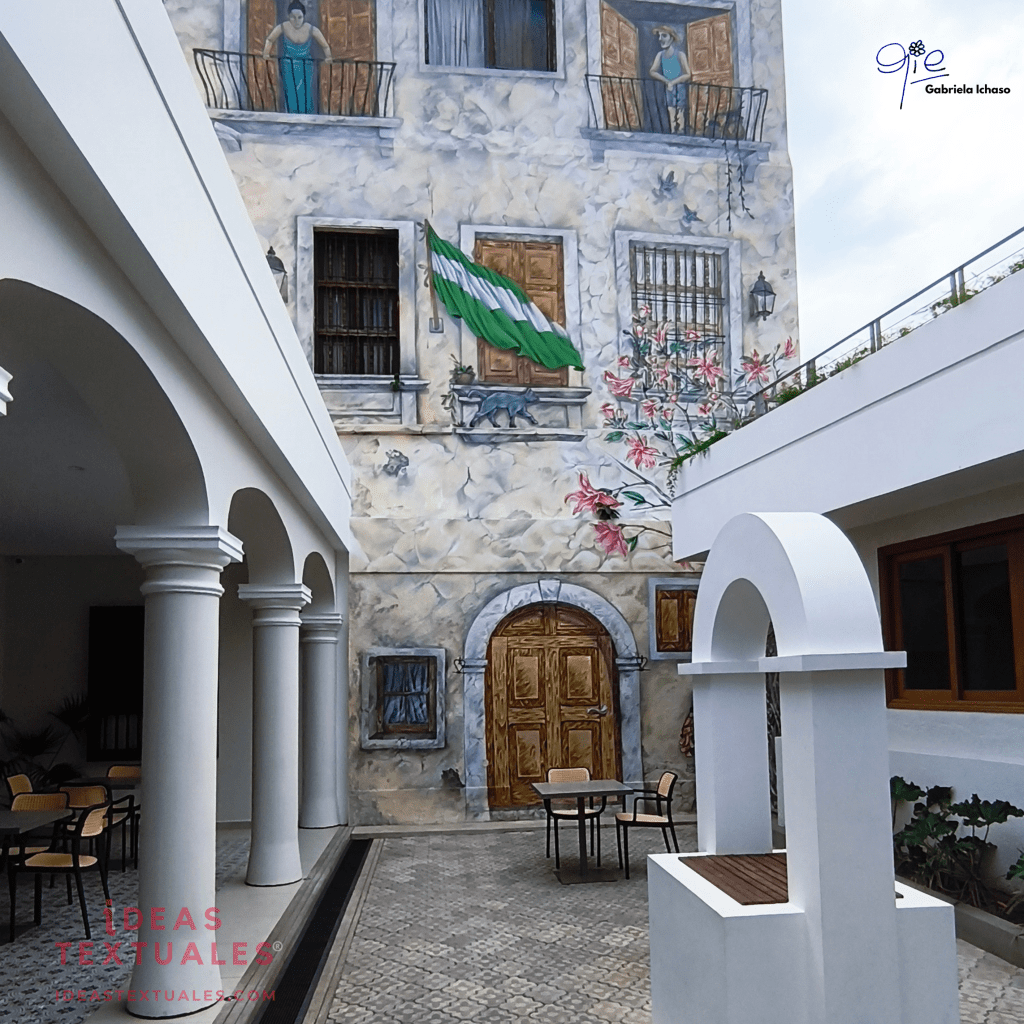 Desde allí nos dirigimos a la casona neoclásica, que data del siglo XIX, puesta en valor por el arquitecto Marcelo Lechuga para el Café L’Arome (sucursal Centro Histórico), ubicada en la calle Chuquisaca entre Ñuflo de Chávez y Warnes. El patio central conserva el aljibe tradicional, un árbol de achachairú y ofrece una vista preciosa de un mural de tres pisos que simula la vida social cruceña desde supuestos balcones. En su galería interior, hay una exposición permanente de obras pictóricas a manera de galería de arte.