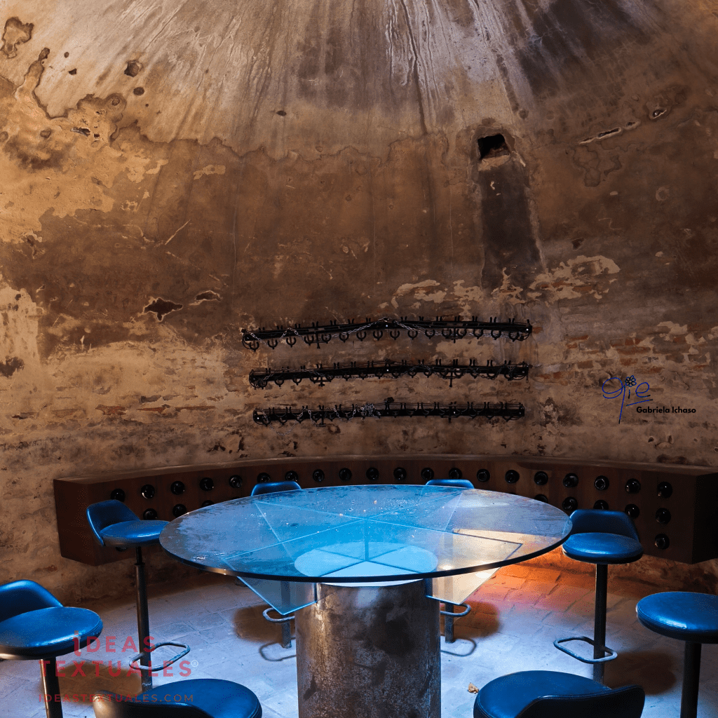 Continuamos la caminata hacia la antigua casa que perteneció a la familia Aramayo Roca y que adquirió la fraternidad Haraganes, en la intersección de las calles Chuquisaca y Ñuflo de Chaves. Su restauración y remodelación estuvo a cargo del Arq. Carlos Cadario. Es una casona que conserva el tradicional aljibe en el patio central, uno de los pocos que deben quedar en Santa Cruz de la Sierra. Como en el caso del Altillo de las Arenales, se ha conservado partes de las paredes originales, donde se puede observar los materiales antiguos y el arte de la construcción cruceña que subsistió en la capital hasta mediados del siglo XX, como adobe y chuchío, una técnica que pervive en el Oriente boliviano. Al ser una casona patrimonial fue conservada su fachada. En el interior, se observa la introducción de materiales modernos y prácticamente el cambio total de pisos. El secreto de la casona se vislumbra a través de la tapa de vidrio colocada sobre el orificio del aljibe. Unas escaleras, pasada la galería de la edificación, conducen a la parte subterránea del aljibe, con una bóveda que muestra la dimensión del espacio donde se colectaba el agua de lluvia y que ahora funciona como una cava del grupo social de amigos.