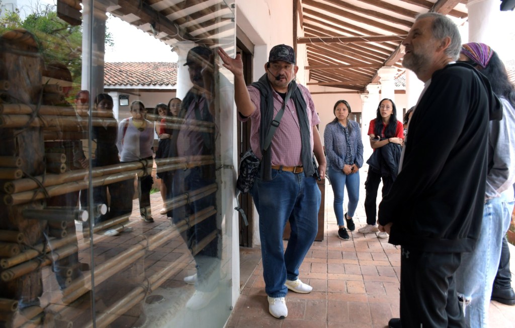 Mario Arrien Gutiérrez es antropólogo, con un vasto conocimiento de las tierras bajas y sus habitantes. Nos condujo por la arquitectura y la historia del Altillo de las Arenales, hoy llamado Altillo Beni, situado al frente del Concejo Municipal. Un espacio patrimonial que preserva la vieja casona y comparte el fondo del patio con un edificio moderno que funciona como oficinas y galerías de arte. En las viejas paredes de la casona, se ha preservado amplios sectores sin revoque para resaltar la técnica constructiva sin ladrillos, sólo madera, chuchío, y barro amalgamado. La restauración fue dirigida por la Arq. María Luisa Vásquez.