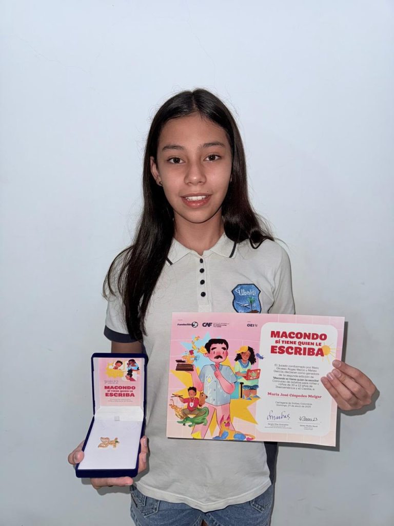 La peladinga del Uboldi se llama María José Céspedes Melgar, cursa el 2do B secundaria y es la única ganadora del “Concurso Macondo si tiene quien le escriba.”