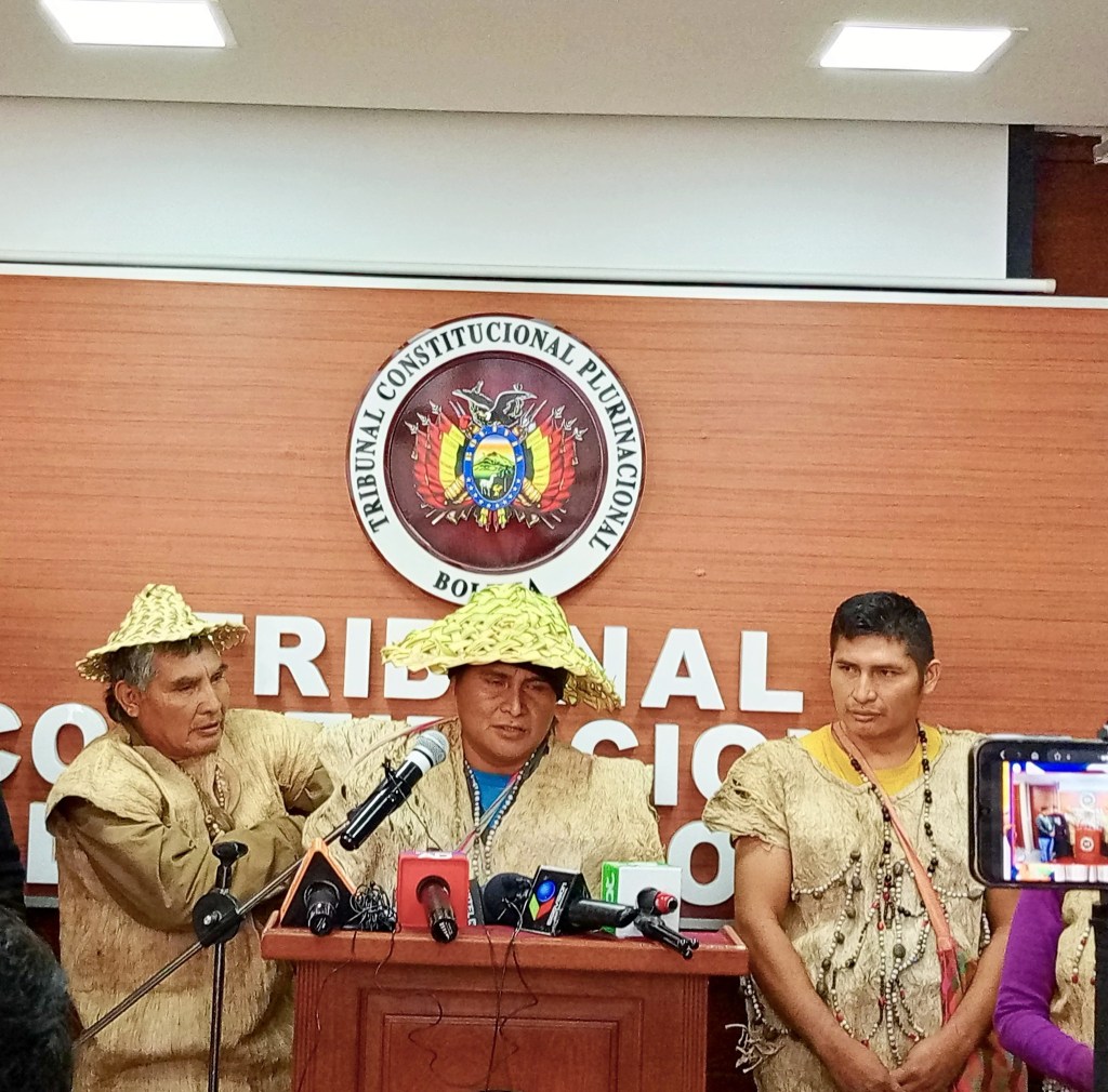 El Tribunal de Justicia Indígena de la CIDOB, encabezado por su Presidente Hugo Molina, estuvo presente en la Conferencia de Prensa realizada en ambientes del TCP, presidida por la Magistrada Isidora Jiménez, donde se dio a conocer el contenido de esta trascendental sentencia. En la misma también estuvieron presentes las principales autoridades del Sub Consejo Tsimane del Sector Yacuma, y la CPILAP.