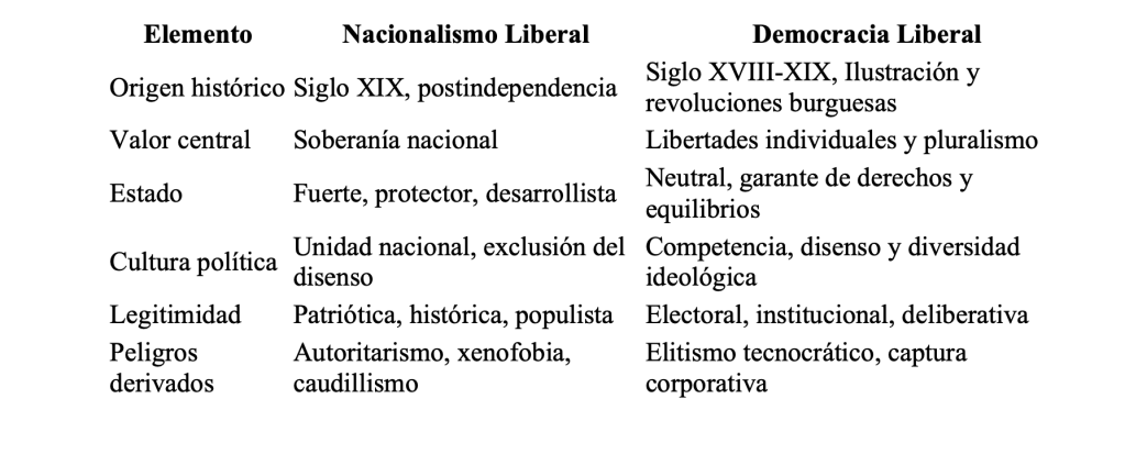 El nacionalismo liberal, que en el caso boliviano se ha presentado con un alto componente autoritario, surge como una corriente del siglo XIX, que buscaba consolidar Estados-nación soberanos, bajo principios de libertad económica y autonomía frente a potencias extranjeras. En su versión latinoamericana, este modelo fue adoptado por élites modernizadoras que priorizaron el desarrollo del Estado sobre la inclusión social. En Bolivia, este ideario pervive reformulado en el discurso del MAS, que combina soberanismo, proteccionismo, una retórica antiimperialista y una impronta autoritaria.