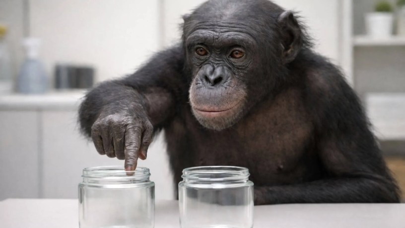 Tal es el caso del bonobo Kanzi, criado en un entorno humano y expuesto desde temprano a interacciones simbólicas, que aprendió a comunicarse mediante lexigramas y gestos. Pero lo verdaderamente sorprendente fue su disposición a participar en juegos de simulación: experimentos en los cuáles un investigador fingía esconder comida bajo una taza vacía. Sin estímulo perceptivo alguno, Kanzi fue capaz de señalar el recipiente “correcto”. No porque hubiera algo allí, sino porque comprendía la regla del juego