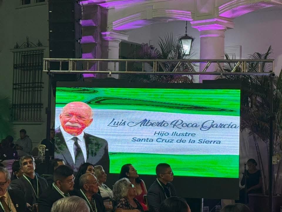 En la ceremonia del Concejo Municipal que lo nombró «Hijo Ilustre», el discurso del Dr. Lucho Roca fue breve y emotivo. Su obra y sus servicios hablan por él y los suyos: «En nombre de mi familia y mío, quiero expresar mi sincero agradecimiento, al Honorable Concejo Municipal de Santa Cruz de la Sierra por la distinción de Hijo Ilustre de esta ciudad.