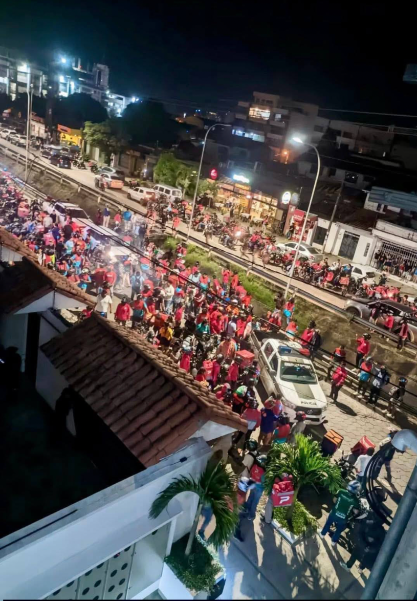 Mientras una ambulancia trasladaba a Fabio para recibir atención médica, cientos de repartidores movilizados llegaron al lugar y encolerizados derribaron el portón de la casa de la familia Méndez Negrete. Llegó la policía, gasificó para dispersar la multitud y trasladó a la señora Marisol Negrete en calidad de arrestada, mientras la gente aglomerada les arrojaba objetos. Las imágenes muestran el desenlace violento de un problema que se veía venir.