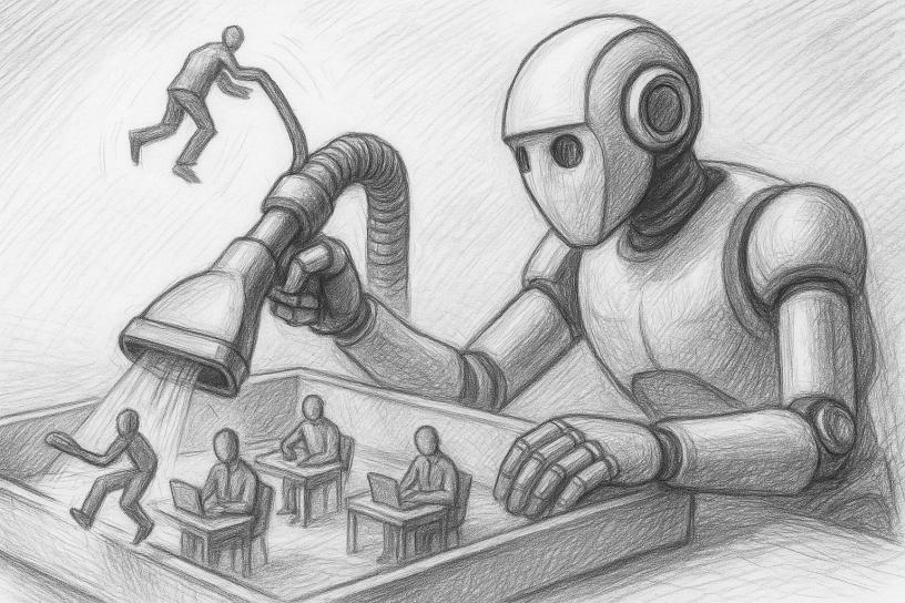 La escena se repite en distintos contextos y funciones. Puede ser un diseñador que observa cómo un sistema genera en segundos propuestas que antes requerían días. O un periodista que ve como se multiplican los textos producidos por un algoritmo. No hay gran estruendo. Se trata, más bien, de una erosión lenta, íntima, difícil de nombrar.