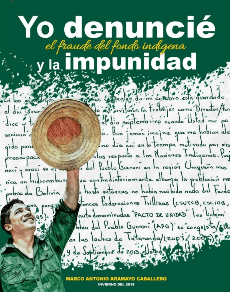 Todo lo expuesto en este libro indica que Marco Antonio Aramayo fue el necesario chivo expiatorio para dejar limpios a los altos mandos del MAS, incluyendo al actual presidente de Bolivia, Luis Alberto Arce Catacora, que fungía como ministro de economía por esas épocas y cuyo despacho autorizó los movimientos financieros que quebraron al FONDIOC. Si de verdad se quiere hacer justicia con los pueblos indígenas, se debe llegar a la raíz de los problemas del FONDIOC; los responsables de su diseño descaradamente deficiente que permitió tamañas irregularidades. Por lo mencionado por el autor, tampoco se investigó a los cuatro mil cuatrocientos beneficiarios de las transferencias público privadas que recibieron los dineros en algunos casos sin descargo ni seguimiento de avances. Otro aspecto es que a una de las principales responsables, Nemesia Achacollo, ex ministra de desarrollo rural y tierras, directa responsable del FONDIOC, se le haya dado casa por cárcel mientras que al denunciante se lo sometió a una persecución judicial que deterioro su salud de manera irreversible.